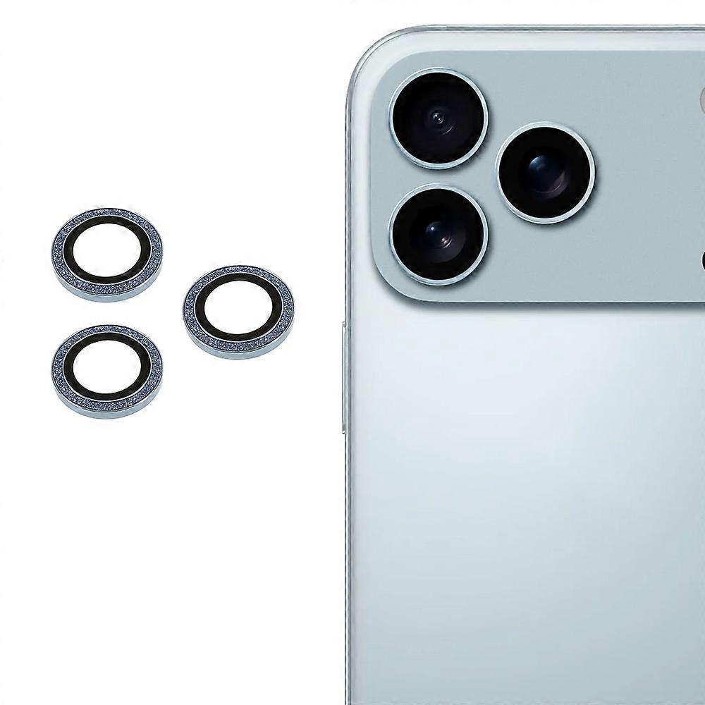 TKdaddy For iPhone 17 Pro Max / 17 Pro Camera Lens Protector Set Bling Glitter Metal Ring Tempered Glass Lens Film Baby Blue