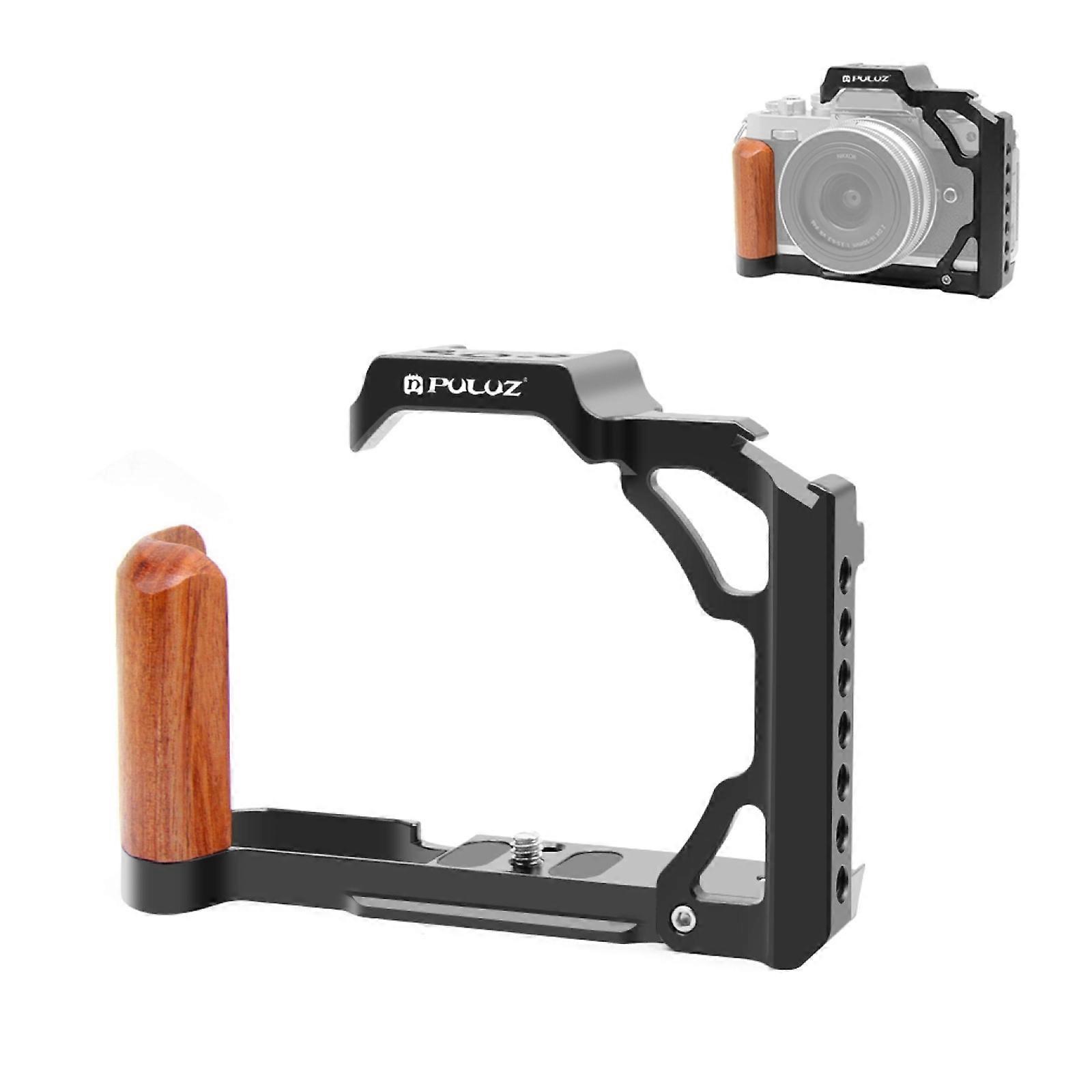 TKdaddy PULUZ PU3112B For Nikon Z fc Cold Shoe Mount Aluminum Alloy Camera Rabbit Cage with Wooden Handle