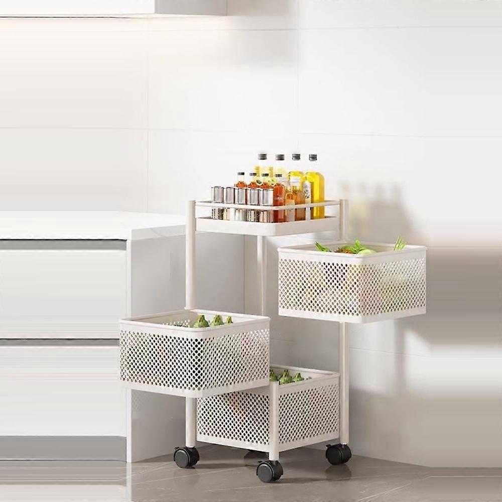 TKdaddy 3-Tier Rotating Basket Home Storage Cart Carbon Steel Kitchen Fruits Vegetables Snacks Organizer White