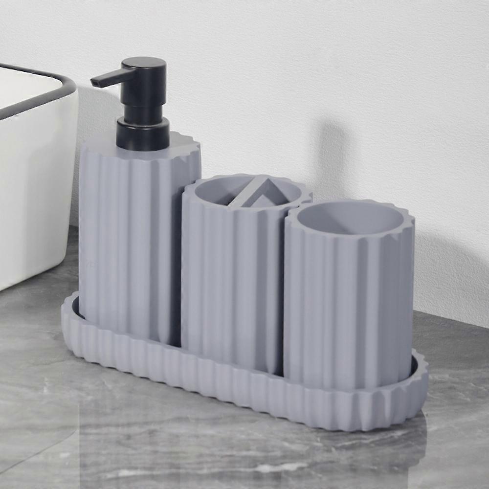 TKdaddy 4-Piece Resin Hotel Toiletry Set Bathroom Accessories with Toothbrush Holder / Mouthwash Cup / Soap Dispenser / Storage Tray Grey