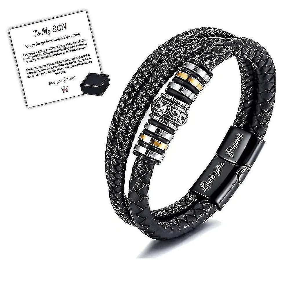 To My Son - 'i Will Always Be With You' Braided Leather Bracelet, Stainless Steel Inspirational Wris