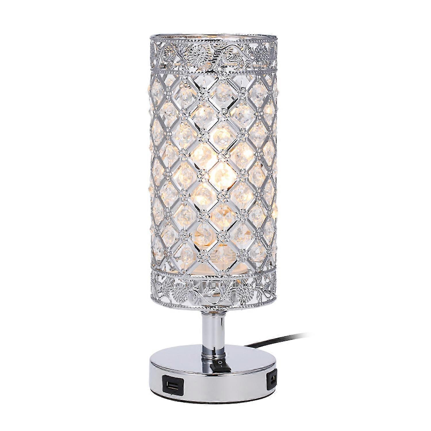 Tomshine Crystal Bedside Table Lamp Decorative Desk Light with Dual USB Charging Port Modern Nightst