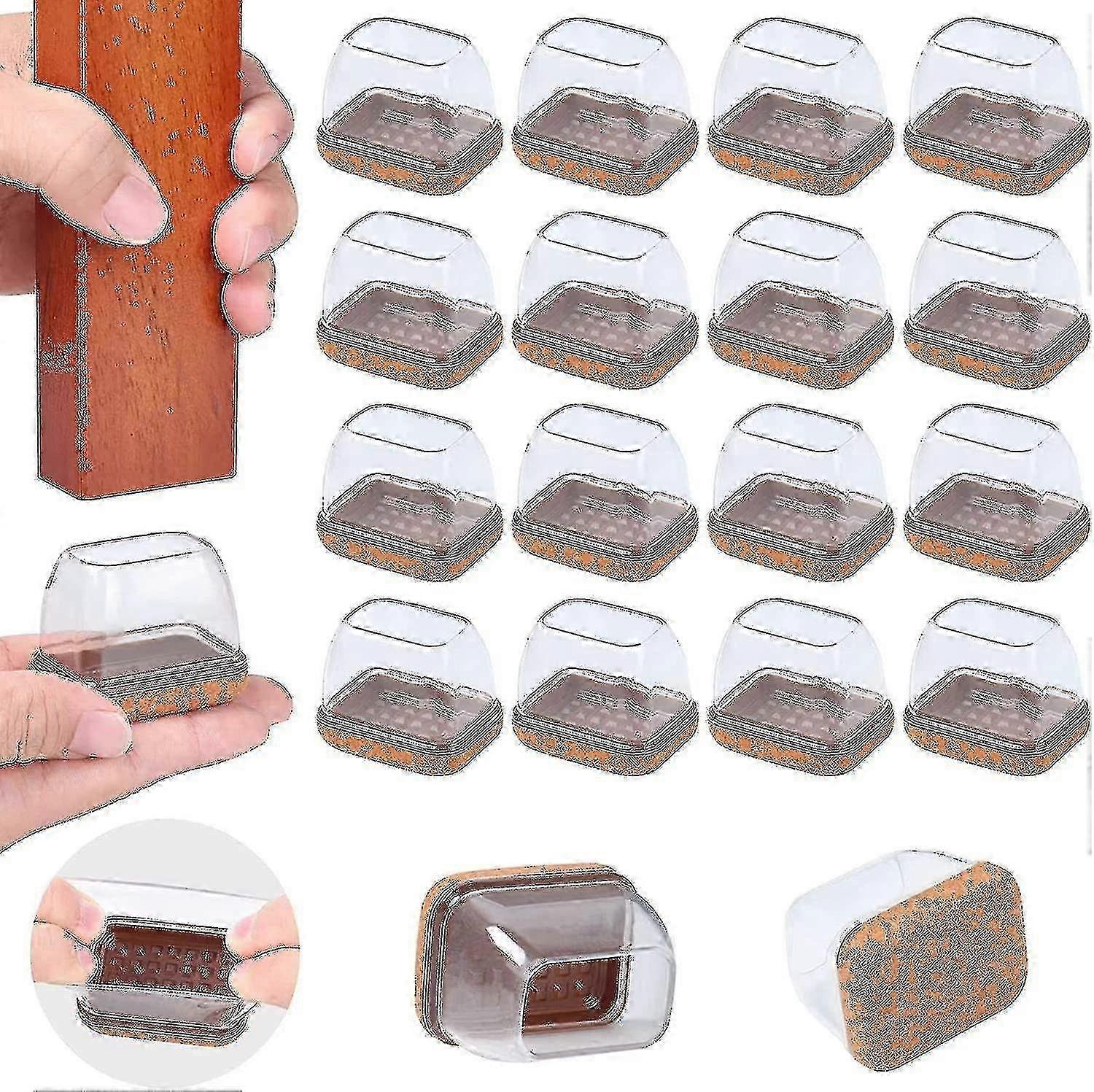 TPR Transparent Chair Leg Caps 16pcs, Square Felt Floor Protectors