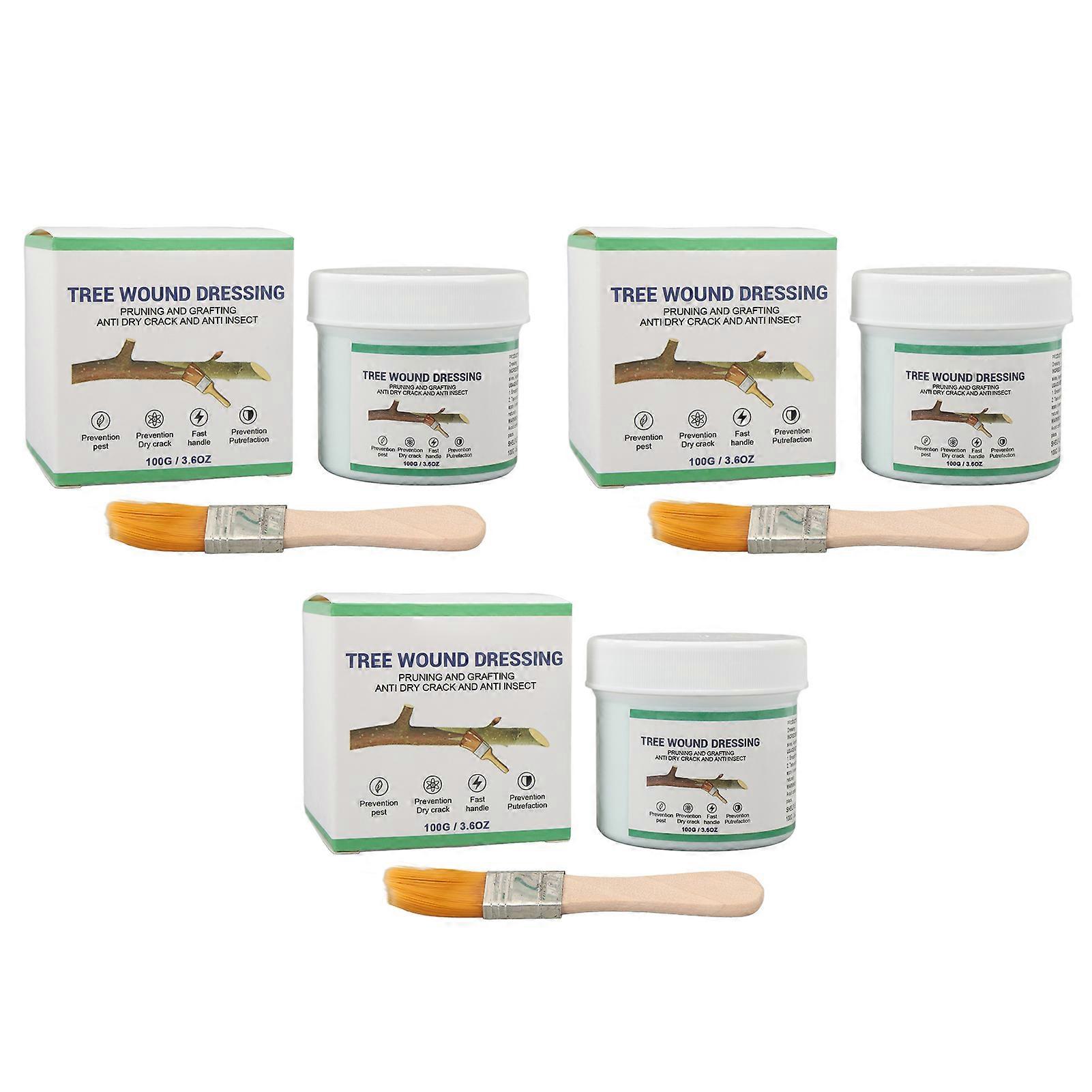Tree Wound Dressing 100g 3 Pcs, Pruning Grafting Sealer Paste with Brush for Tree Shrub Healing and Recovery of Lushness