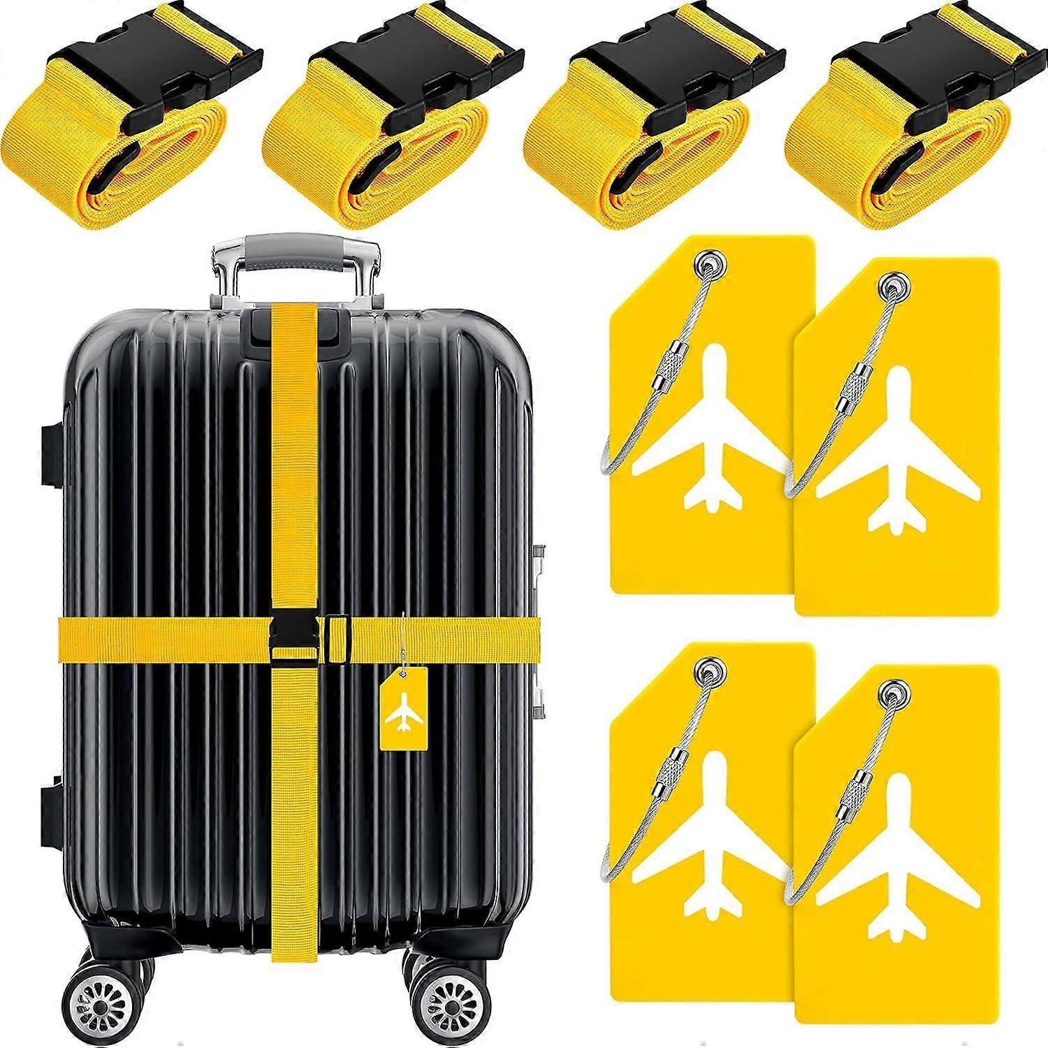 8-Piece TSA Luggage Set - 4 Adjustable Straps + 4 Silicone Tags with Card Slots - Luggage Travel Accessories (Yellow)