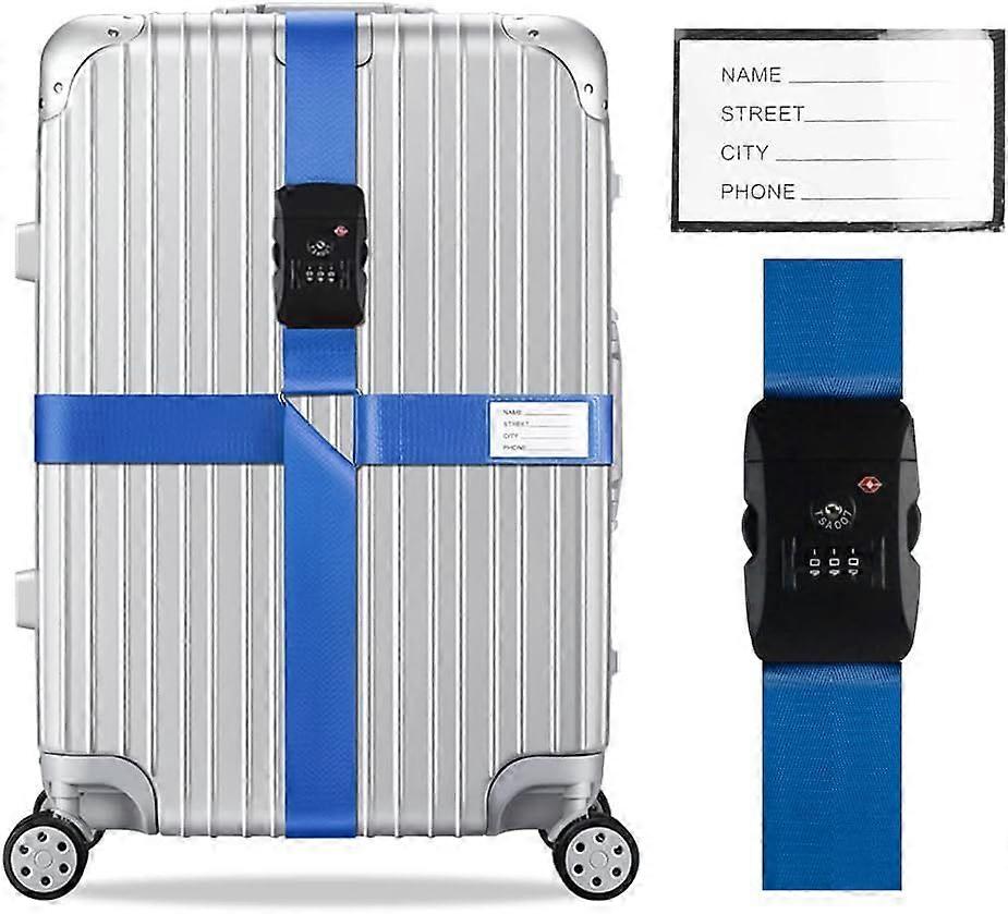 TSA-Approved Lockable Luggage Straps - Adjustable Cross Suitcase Belt with ID Tag - Travel Security Accessories (Blue)