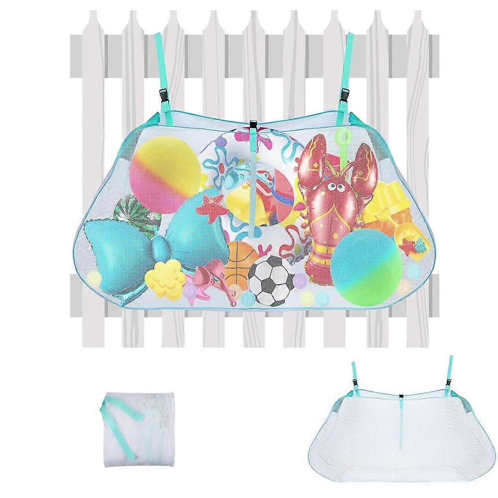 description: Pool Storage Bag Adjustable Hanging Mesh Organizer for Balls,Floats,Water Inflatable Toys and Other Pool Accessories. This green hanging mesh bag allows inflatable toys to better shed sand and water, and can withstand wind and rain disturbances, keeping items from blowing away. The green hanging mesh storage bag is designed with adjustable shoulder straps and can be hung on the railing; when not in use, just take it off and fold it. Specifications: Item: Pool Large Storage Bag Material: Nylon Size:57 x29 x11 inches Color:Green Package includes: 1 x Pool Storage Bag Anti-Drop Function - inner-support system secures floats more tightly, unique design minimizes drooping and allows easier access to items at the bottom, with elastic opening that keeps items from falling out. Foldable for Storage - Spacious volume without taking up ground space! Great for bulky items! when you don’t use it, just take it off and fold it for storage. Large Capacity - Large hanging mesh storage bag holds sports balls, soft toys and outdoor accessories to clean up clutter around the yard or house. Easy to Install&Disassemble - Adjustable straps and buckle, Integrated hooks give strength and flexibility to hung directly from fences, gates, and most above-ground pools, allow quick detachment. Easy to Clean - The storage bag itself and objects in the bag can be spray-cleaned with water and dry quickly.and the mesh allows easy rinsing and quick drying of pool toys, sports accessories and cleaning equipment.