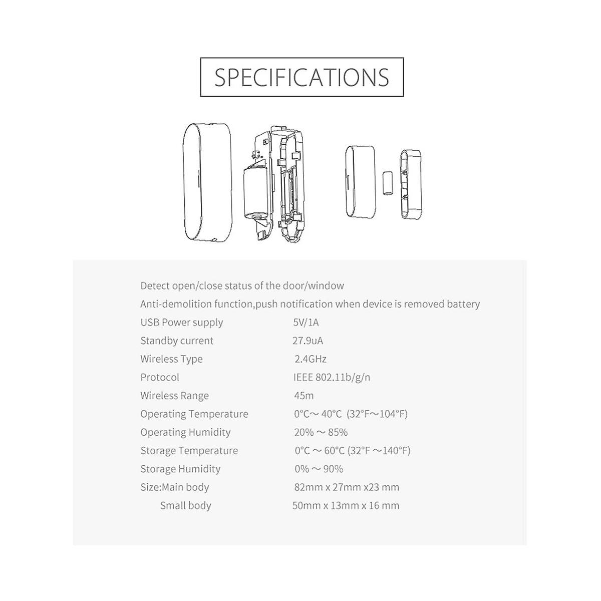 Tuya Smart Door Window Sensor WiFi Smart Home Wireless Door Detectors USB Open/Close APP Remote Ala