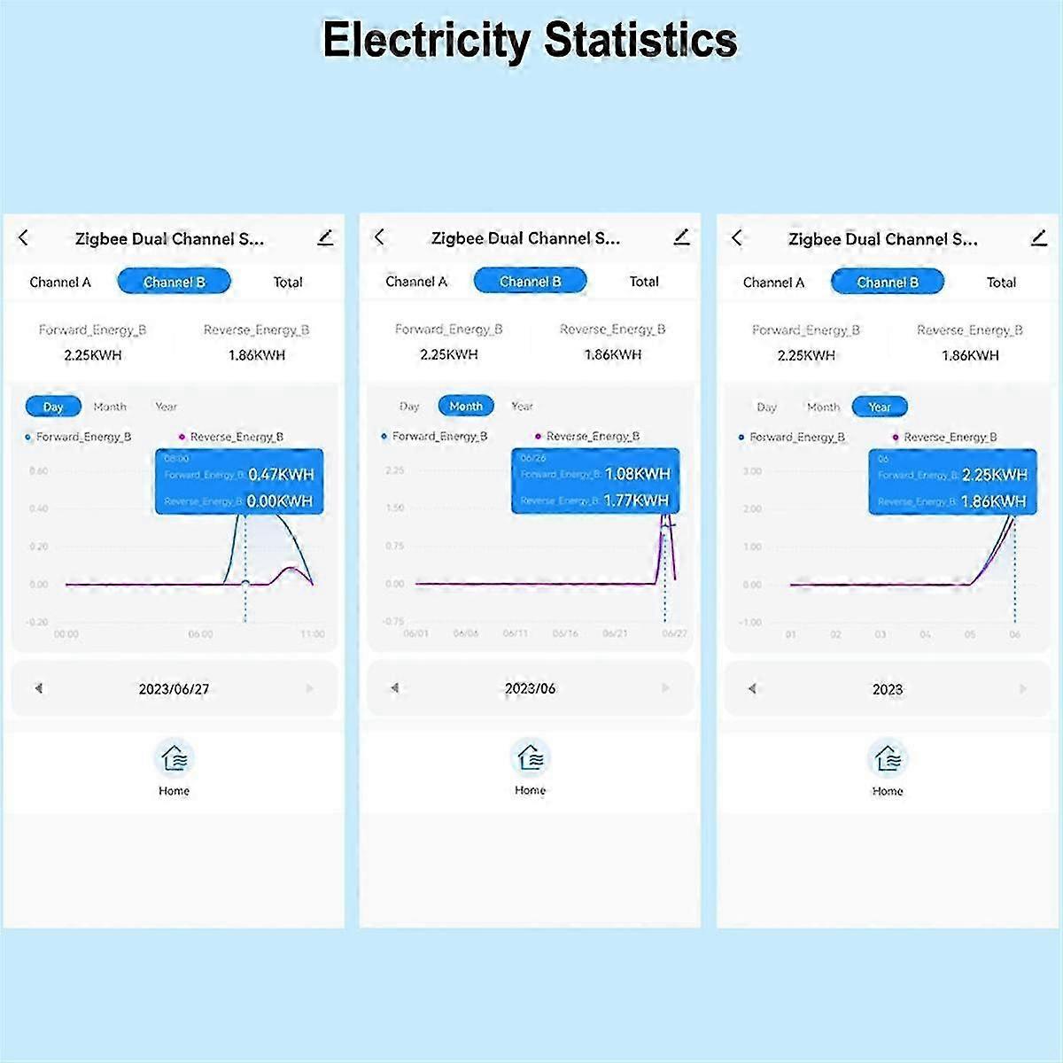 Tuya Smart Zigbee Energy Meter 2 Way Bidirectional With Current Sensor Clamp App Monitor Power 100-240vac,2 Channels 2ct