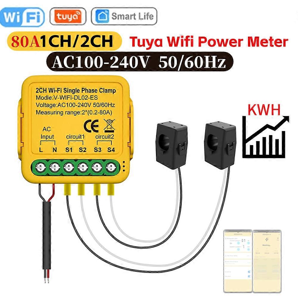 Tuya WiFi On-off Controller 80A Energy Meter Current KWh Power Electricity Statistics Monitoring Device for Alexa Google Home