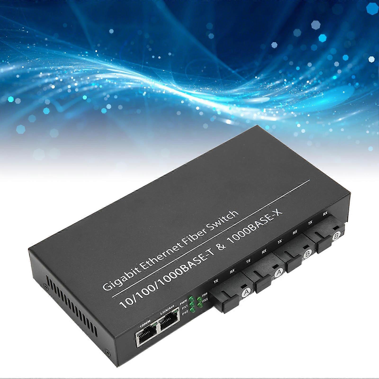 Tx1310nm Rx1550nm Fiber Transceiver Single Fiber Single Mode Up To 20km RJ45 Port 2 Electrical Port 4 Optical Port 100‑240V UK Plug