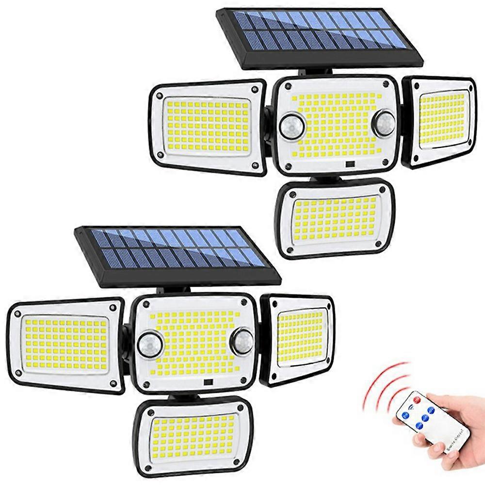 TY10312 2Pcs 4 Heads Solar Outdoor Wall Light 342 LED Motion Sensor Lamp for Garden Yard Pathway