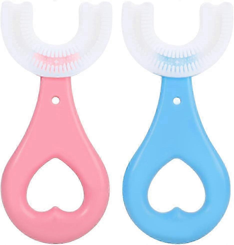 2 Pack of U-Shape Children's Manual Toothbrushes with Food-Grade Soft Silicone Brush Heads Ideal for Kids Ages 2-6