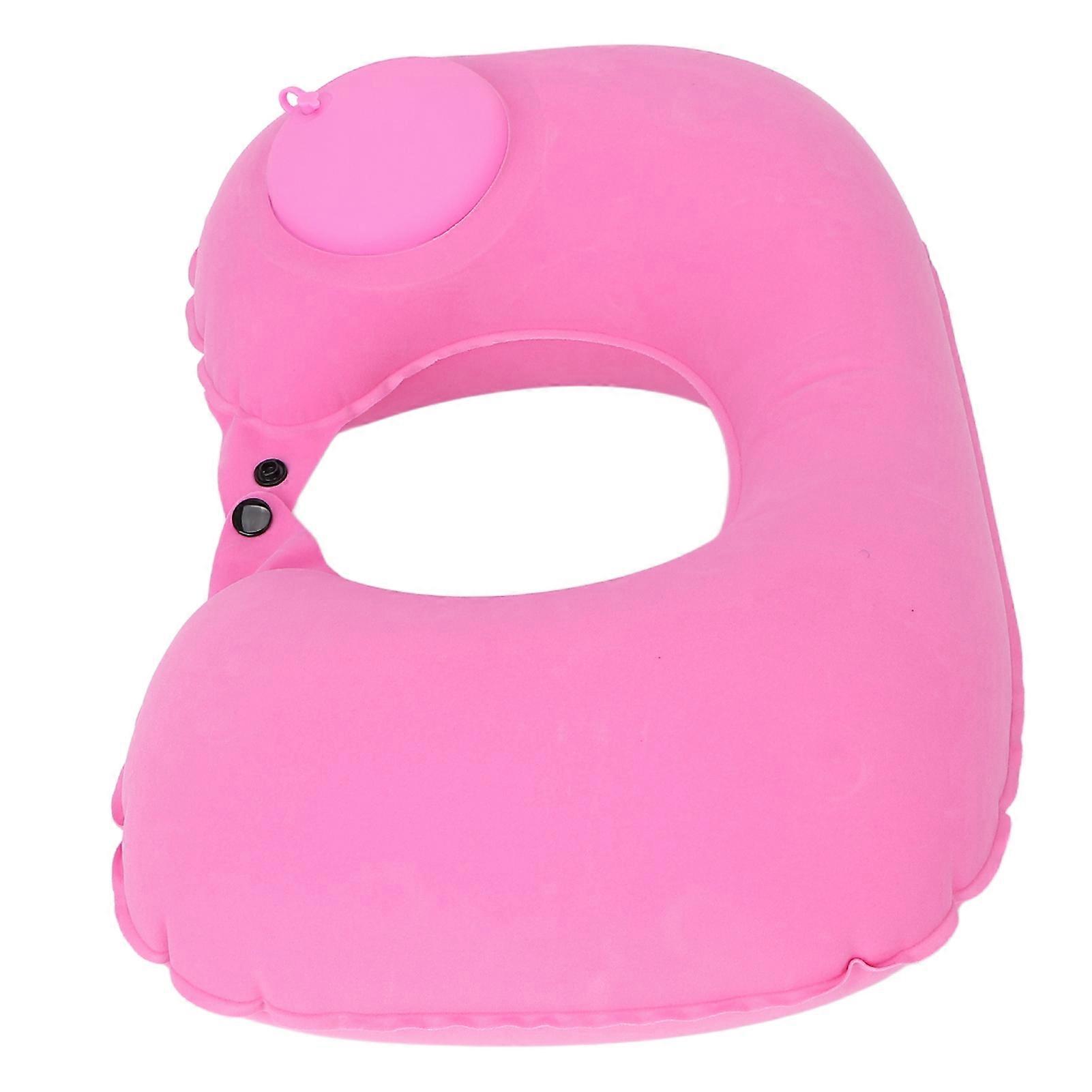 U Shape Inflatable Neck Pillow 36x23cm Pink Flocking Cushion