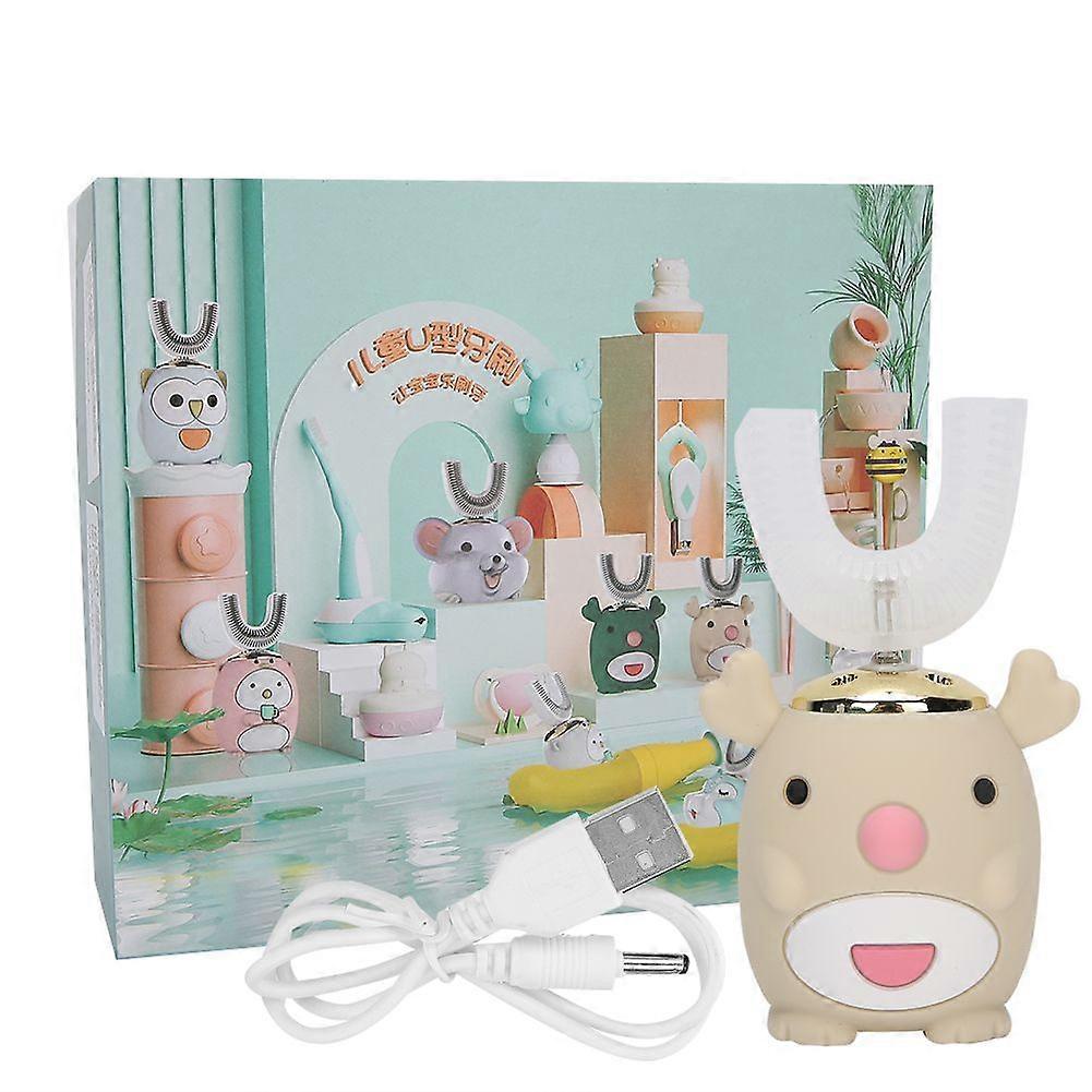 U‑Shaped Children Electric Sonic Toothbrush Intelligent Cleaning Toothbrush Oral Care Tool(Beige 26 Years Old)