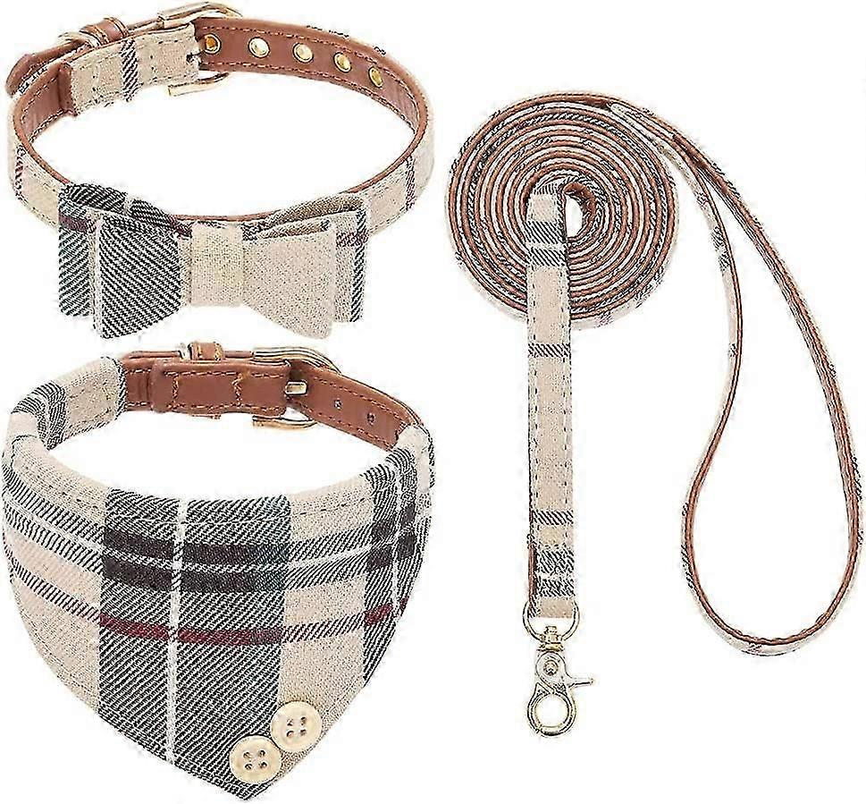 UBIUO Bow Tie Dog Collar with Leash Set - Cute Adjustable Classic Plaid Dog Bandana Collar with Bell, Fit for Medium Dogs, Puppies and Cats Outdoor Wa