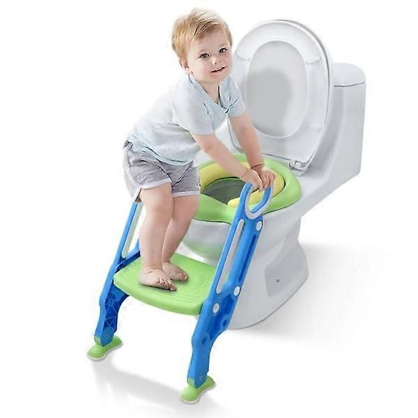 UISEBRT Child Toilet Seat with Folding Stairs Polyurethane Cushions and Handles Height Adjustable Blue and Green