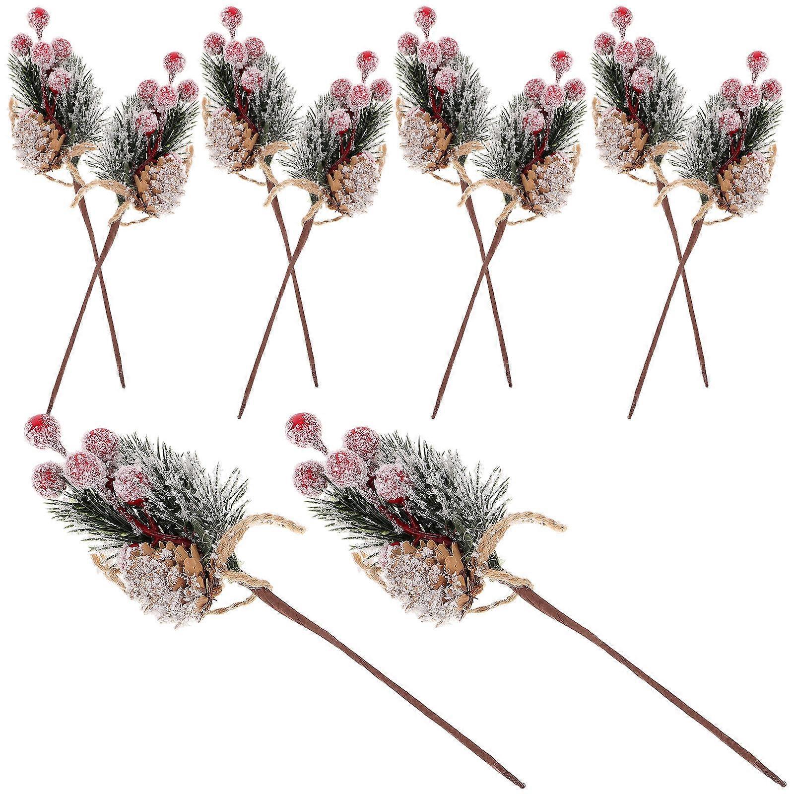 ULTNICE 10pcs Small Artificial Pine Picks Red Berry Flower Ornaments for Christmas Floral Arrangements Wreaths and Holiday Decor