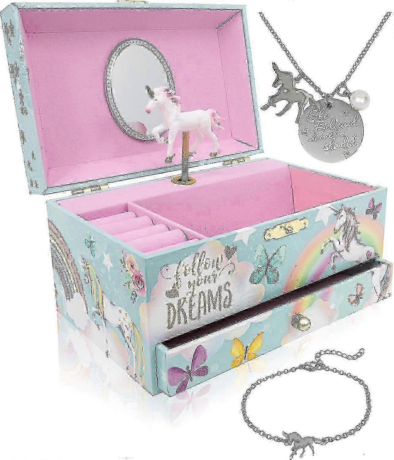 Unicorn Jewelry Box For Girls & Boys - Musical Girls Jewelry Organizer Box - Granddaughter Gifts For 8-year-old Girls