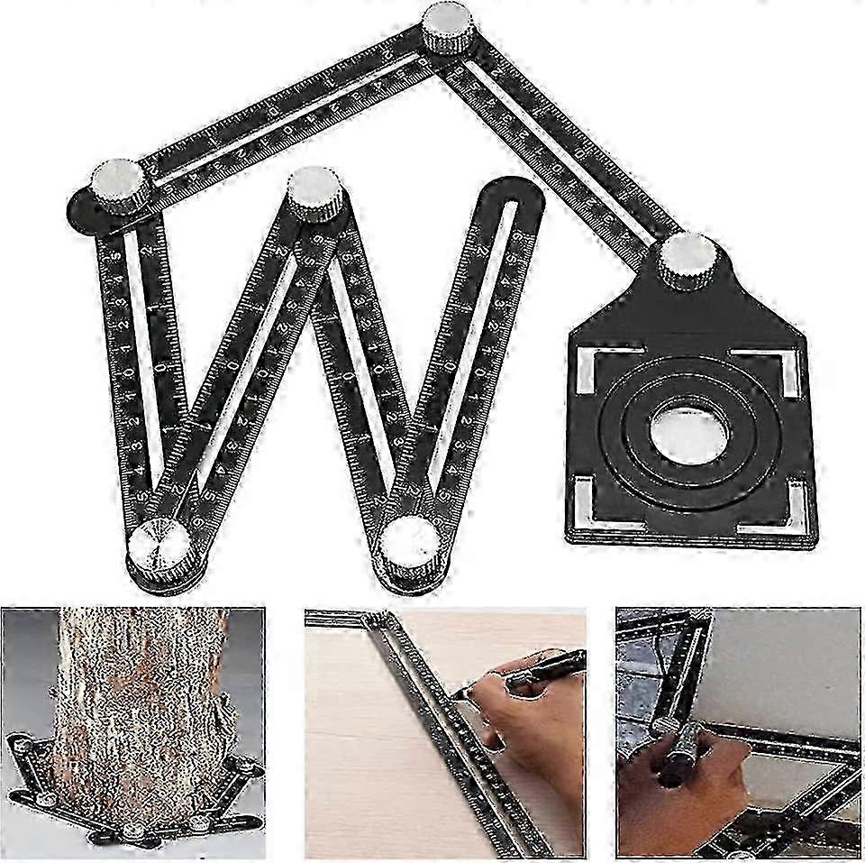 Updated Version Multi-Angle Ruler - Adjustable Fold Aluminum Alloy Angle Ruler with Ceramic Tile Hole Punch and Drill Guide