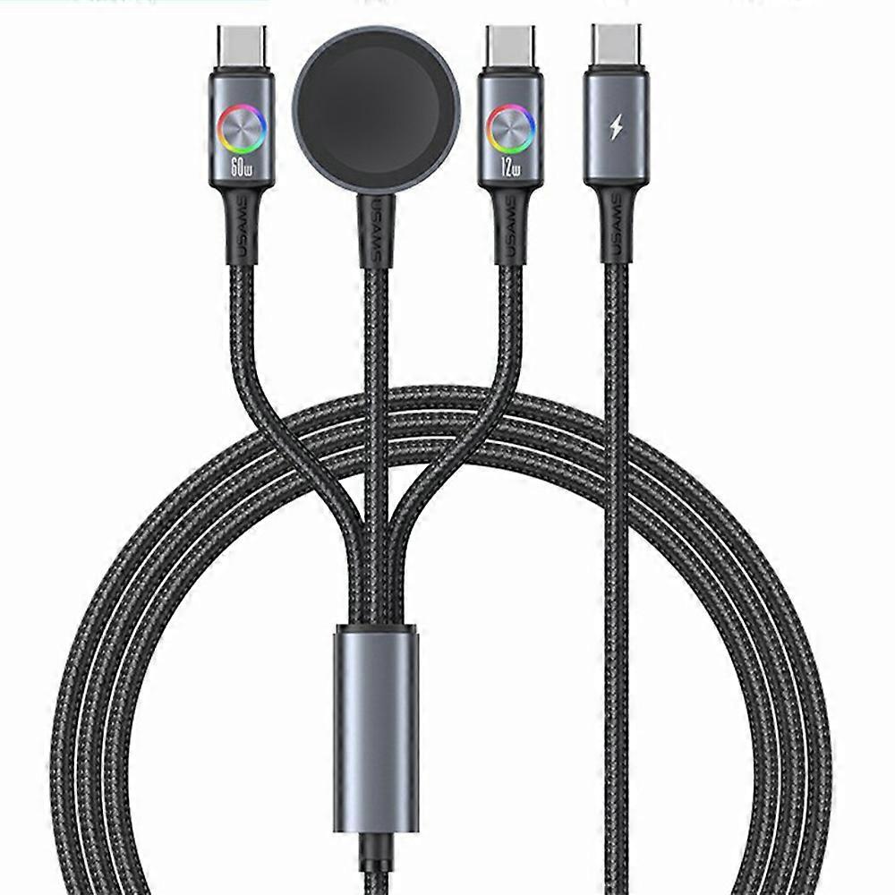 USAMS SJ754 1.2m 3 in 1 For Apple Watch Wireless Charger with 60W + 12W Dual Type C Charging Cable