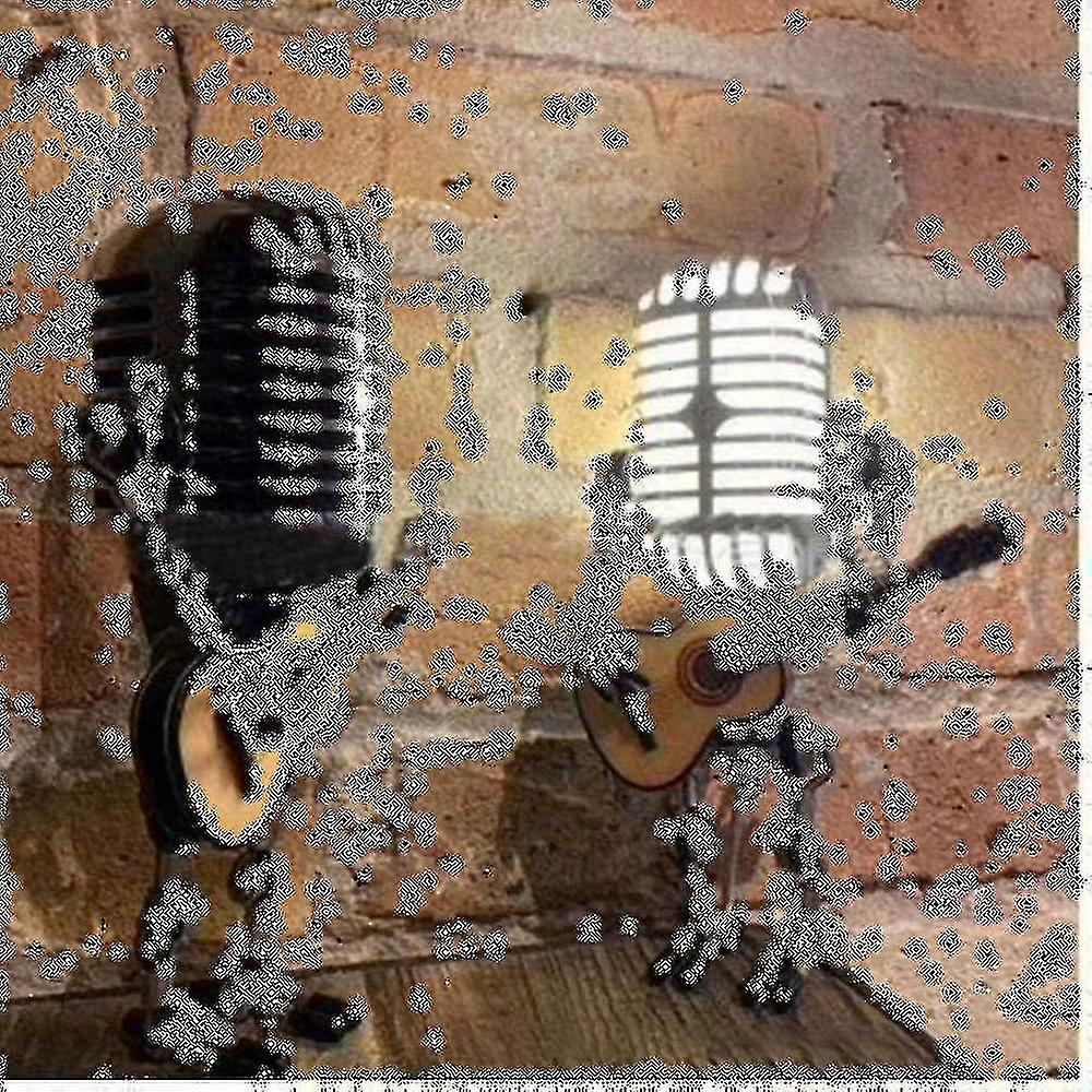 Usb Retro Style Microphone Robot Lamp Holding Guitar With Light Vintage Home Decoration