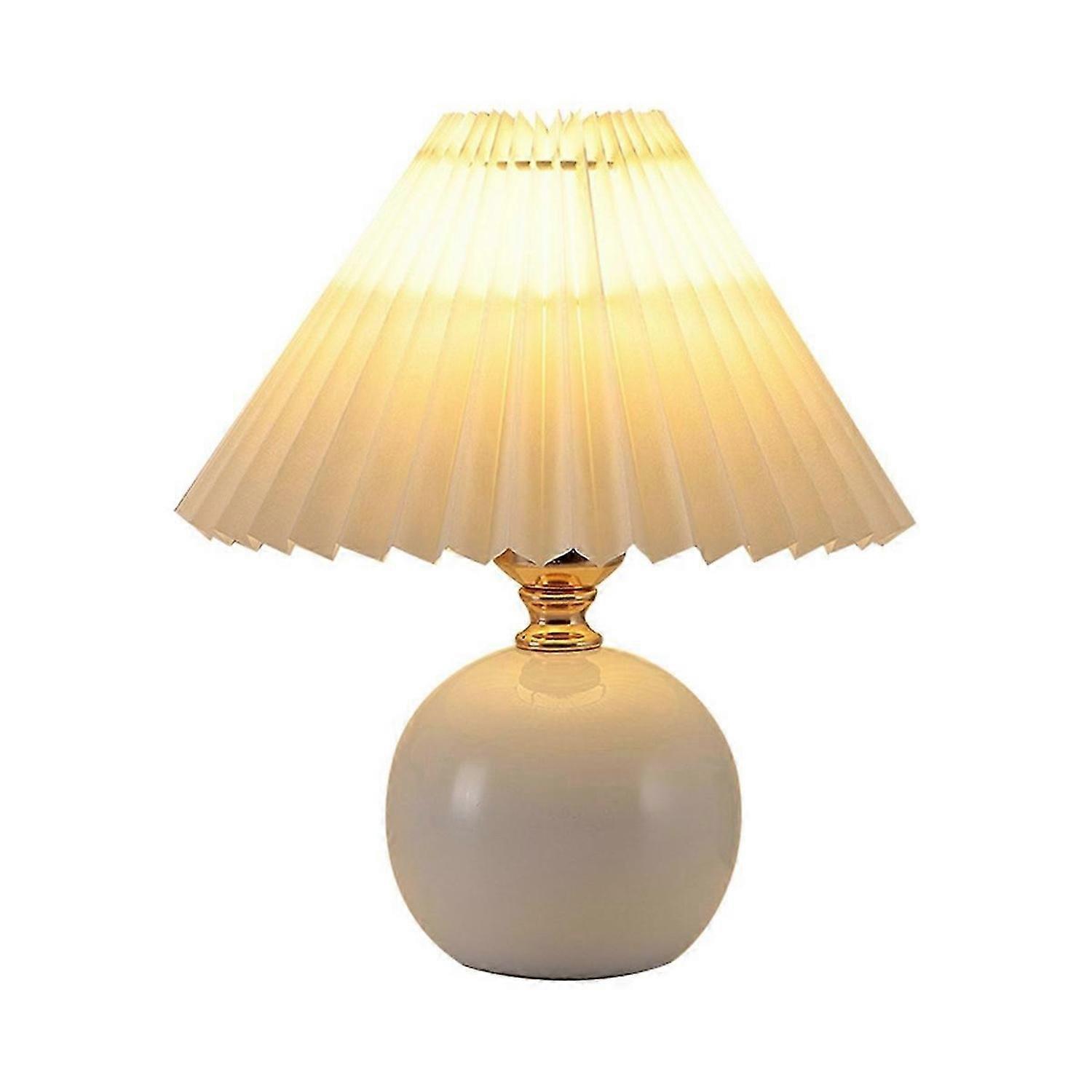 Pleated lampshade Pleated lampshade shape, fashionable and retro, brings warm companionship for alone time The ceramic lamp holder is made of naturally selected clay, and the smooth and natural glaze color creates a quiet and leisurely atmosphere. Beautiful decoration for bedroom, living room, dining room, shop, dining room, office.<br><br>Light Colour: warm light Colour:White Material:ceramics<br><br>Package Contents: 1 x desk lamp<br><br>Only the above package content, other products are not included. Note: Light reflection and different displays may cause the color of the item in the picture a little different from the real thing. The measurement allowed error is +/- 1-3cm.