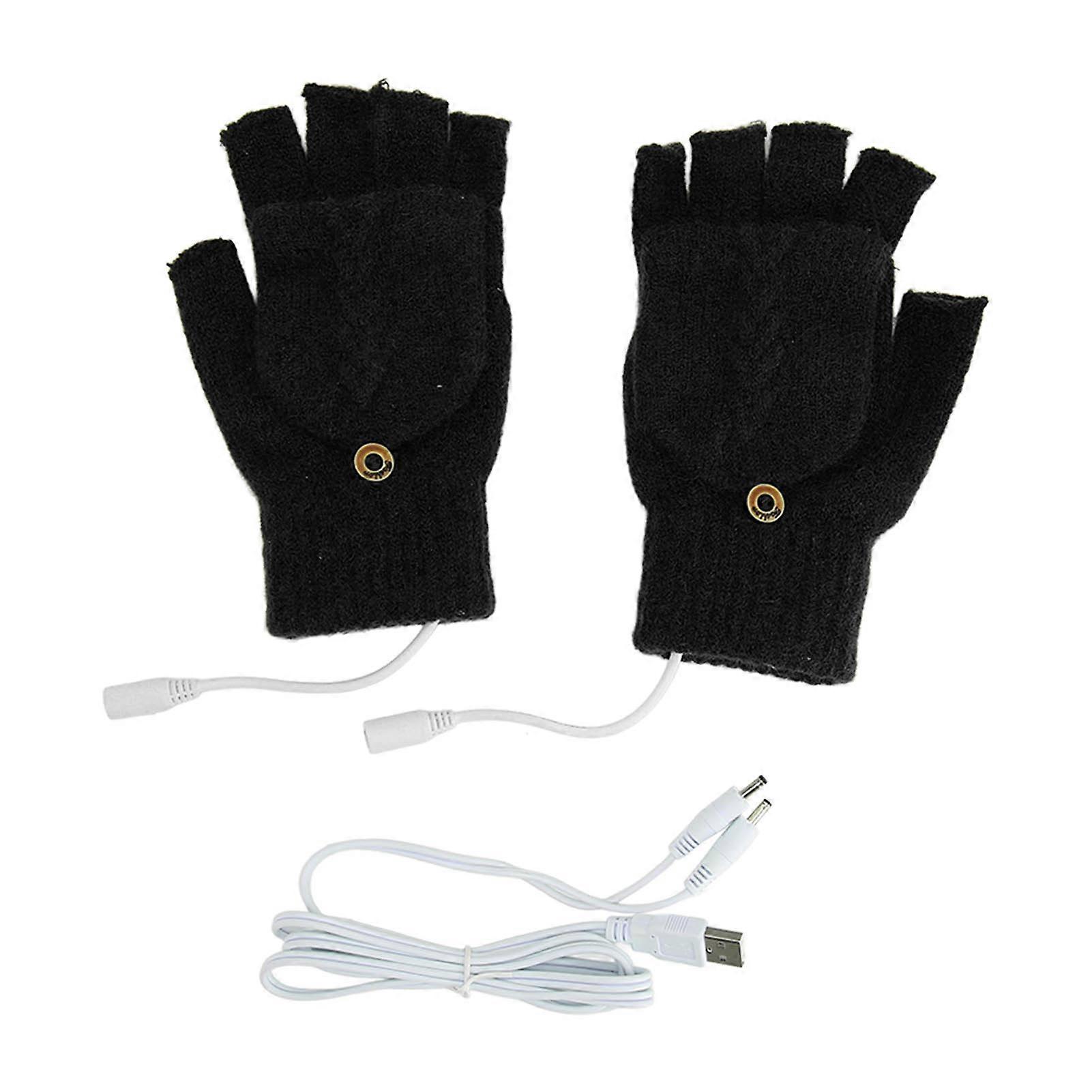 USB Heated Gloves Full Half Fold Back Warm Heated Winter Knitted Fingerless Gloves for Home Office Black