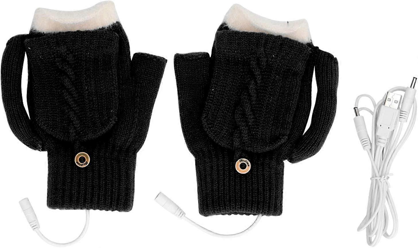 USB Heated Gloves Womens & Mens Winter Warm Half Gloves Double Sided Heating Knitted Gloves Temperature Adjustable Thermal Gloves Hand Warmer for Indo