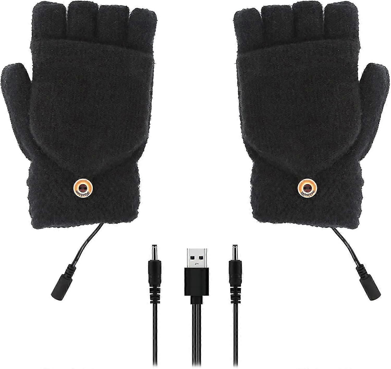 USB heated gloves compatible women and men mid-winter warm hands compatible laptop, full and half heated knitting hands without heated fingers compati