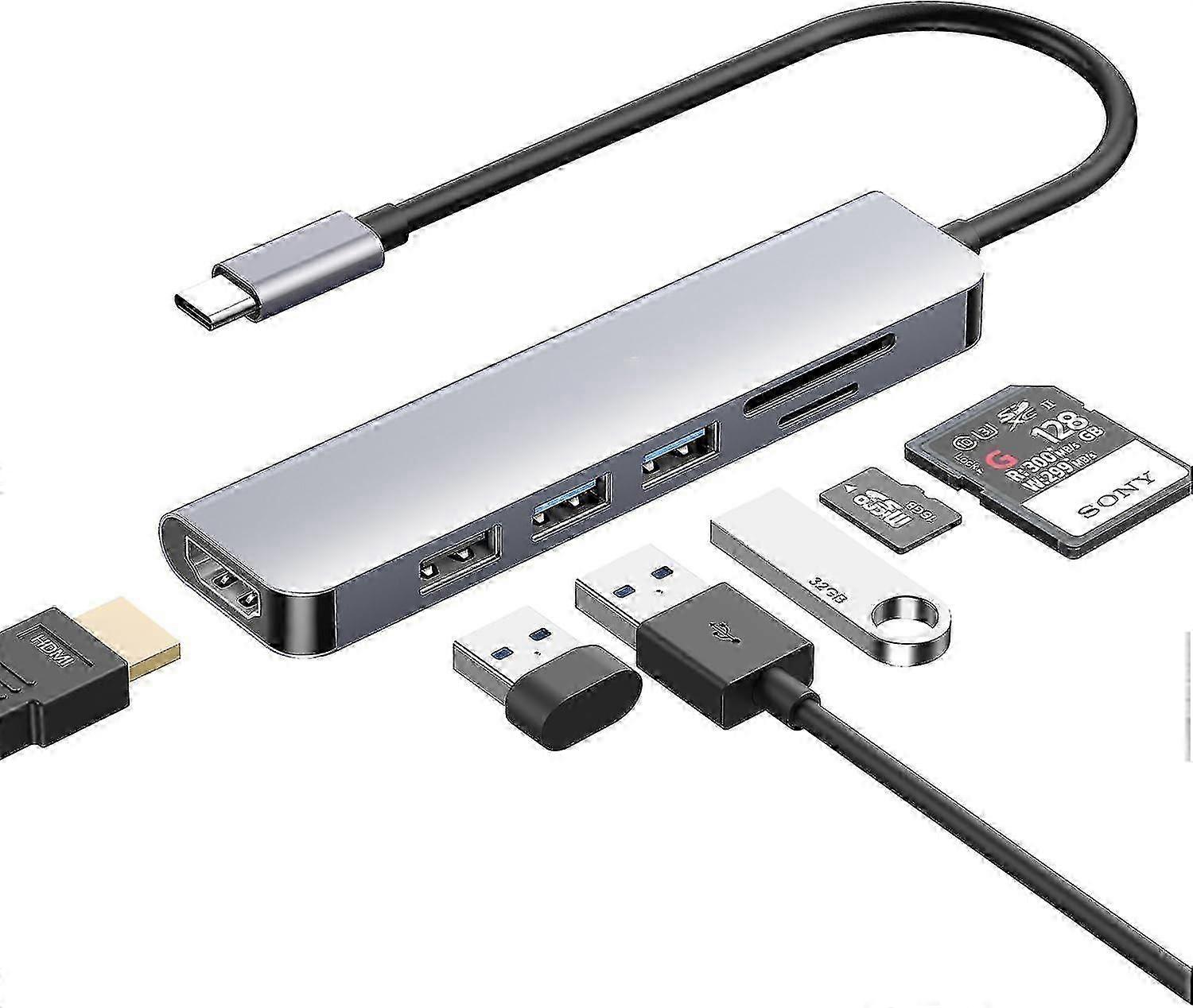 Usb C Hub Jeswo 6-in-1 Usb C Dongle With 4k Hdmi Adapter Sd/micro Sd Card Reader 2 Usb 3.0 Ports Extra Usb2.0 Multiport Adapter For Macbook Pro A