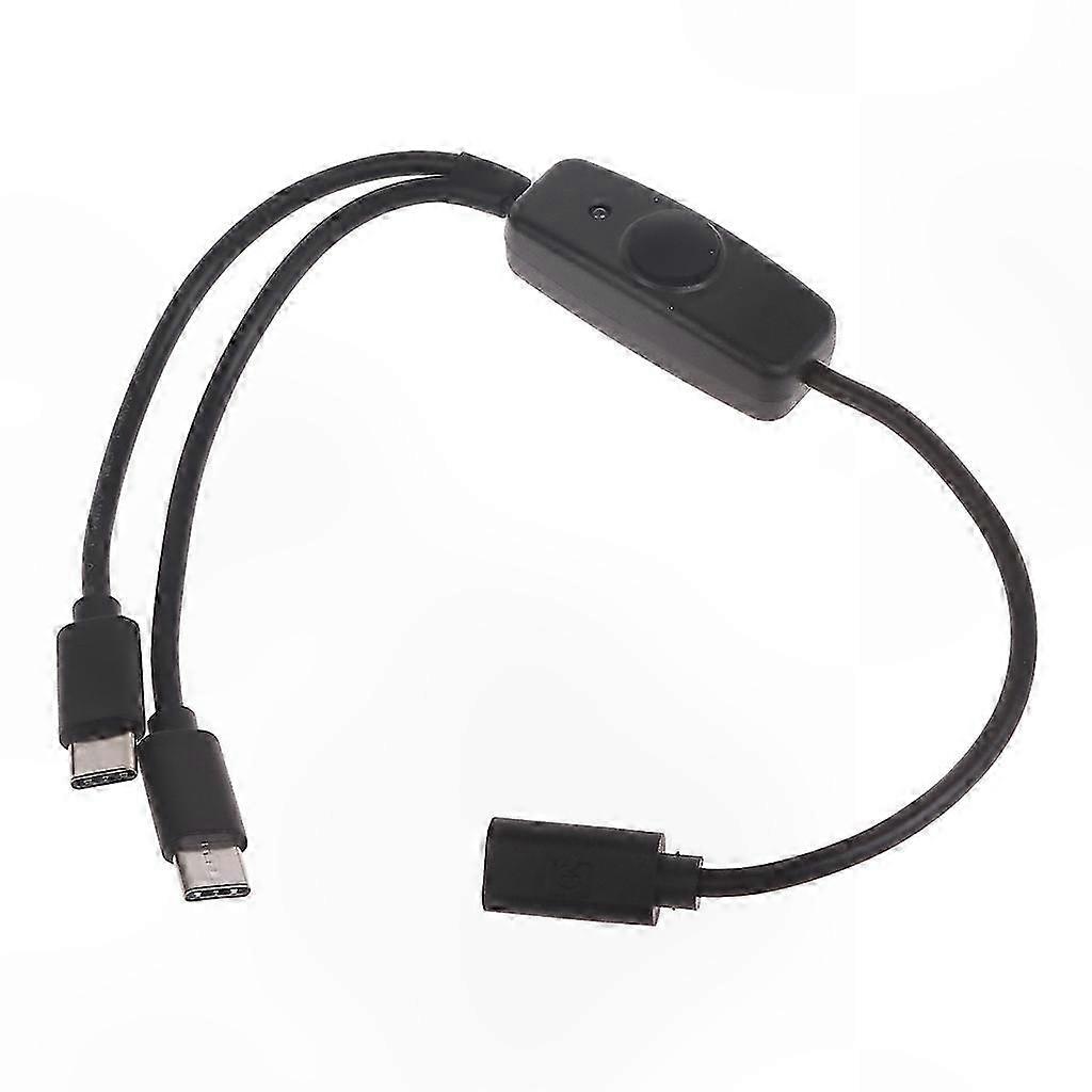 Features: This Type C female to double USB male adapter with on/off button and LED indicator allows you to charge two devices simultaneously at 5V 10W; Ideal for charging phones, tablets, earphones, speakers, and more. Made from durable plastic, this extension cord is sturdy and lightweight, making it easy to carry. The on/off button ensures safe and convenient use. Suitable for travelers who need to charge multiple devices. With this Type C adapter, you no longer need to carry multiple chargers or worry about running out of battery. Specifications: Material: Plastic Length: Approx. 30cm / 11.81in Color: Black Wire specification: 2464 22# (17/0.16mm) copper core Charging Power: 5V 10W Note: Please allow 1-2cm errors due to manual measurement. Please ensure you are comfortable with this before ordering. Due to differences between monitor displays, the picture may not reflect the actual color of the item. Package includes: 1 x Type C Extension Cable