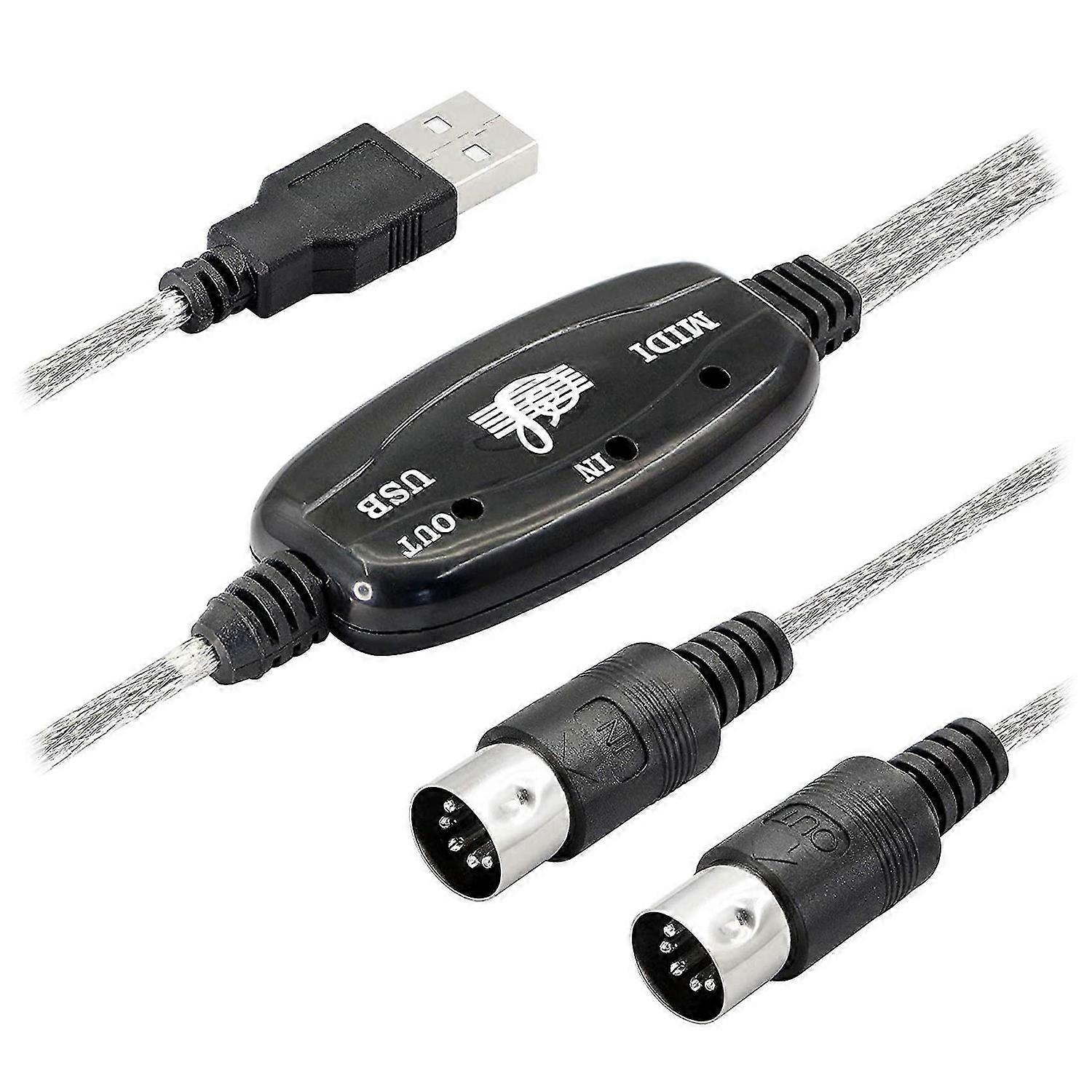 USB MIDI Cable Adapter, USB Type A Male to MIDI Din 5 Pin in-Out Cable Interface with LED Indicator