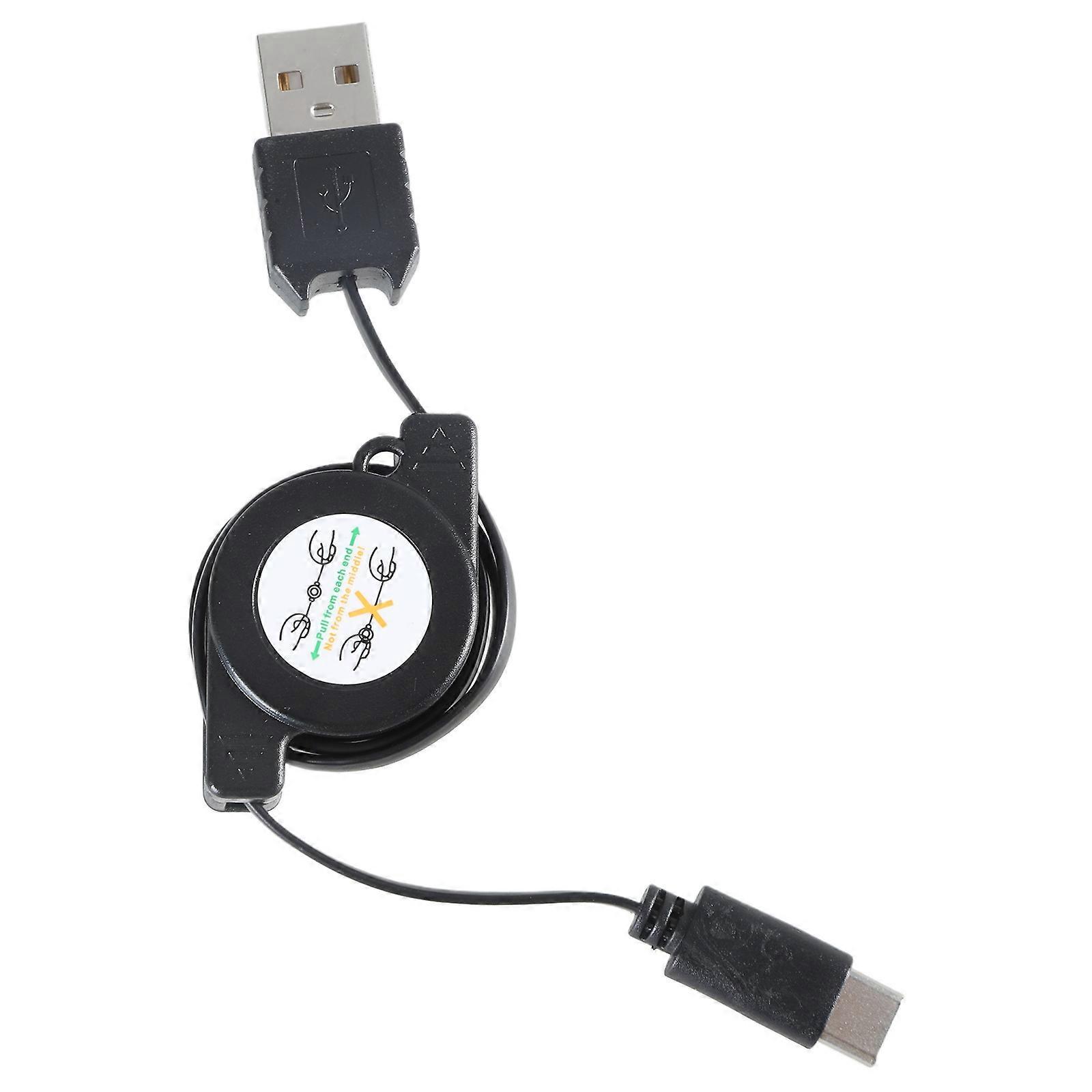 USB Type C Retractable Charger Cable Sync & Charge Cord For Computer Cellphone Black