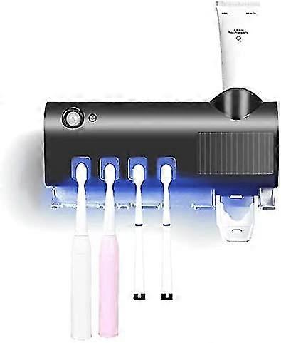 UV Toothbrush Sterilizer with Auto Toothpaste Dispenser, Solar/USB, Black