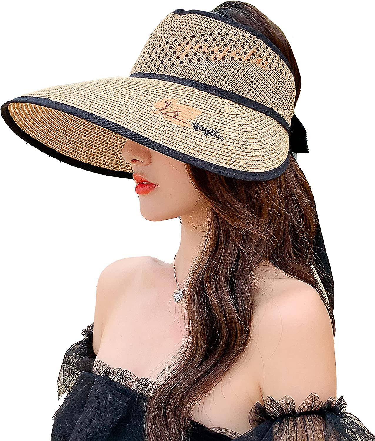 Women Summer Wide Brim Sun Hat Floppy Travel Hat Beach Straw Hat UV Protection Cap