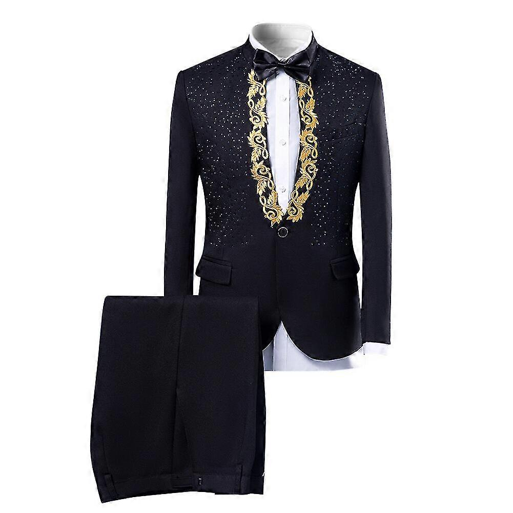 VAWAN Mens 2-Piece Embroidered Rhinestone Solid Color Suit Slim Fit Wedding Theater Costume
