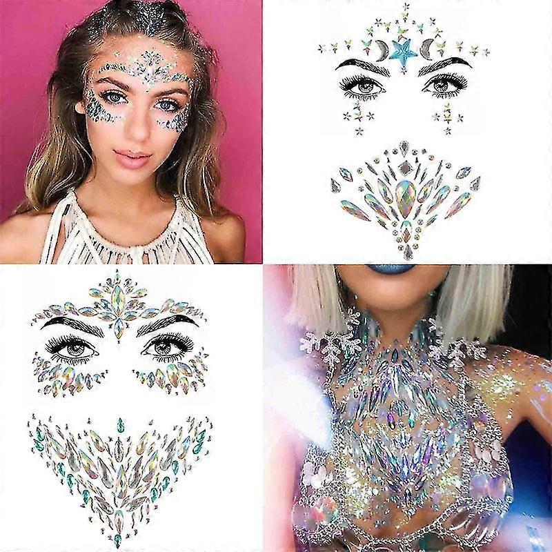 Veeki Halloween Face jewels festival Women Face Gems Glitter 2 Sets Rhinestone Rave Festival Face Jewels,Crystals Face Stickers Eyes Body Temporary T