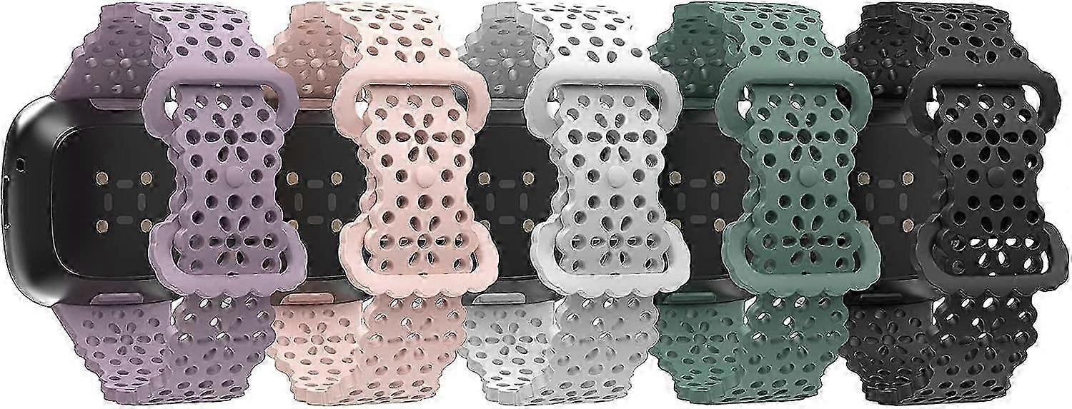 Sport Bands Compatible with Versa 4/Versa 3/Sense 2/Sense, 5-PackSoft TPU Replacement Straps,Women Wristbands-Lavender/Pink/Black/White/Pine Green