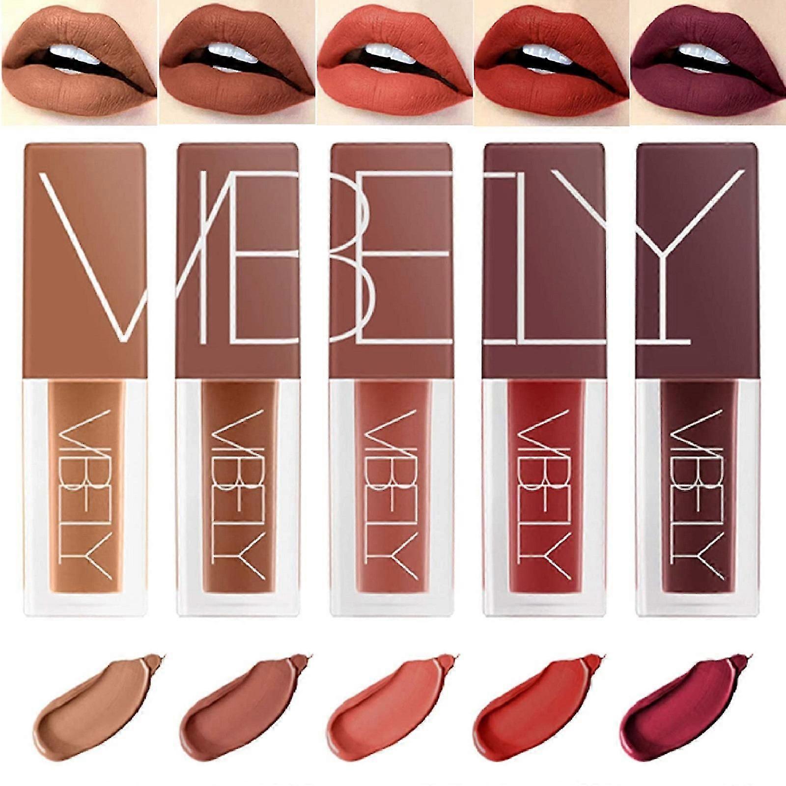 Vibely Matte Lip Gloss Set, 5pcs Non-Stick Cup Liquid Lipstick