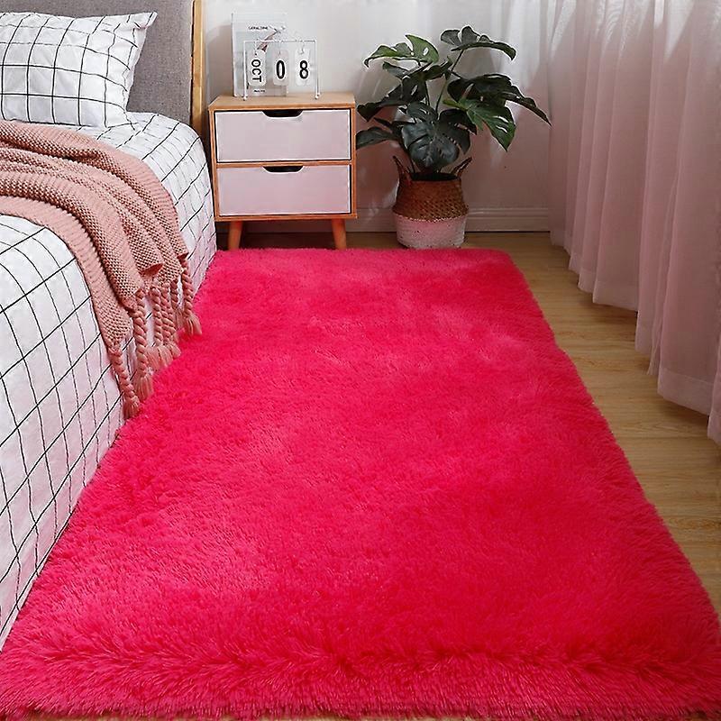 VIKAMA Solid Color Silk Wool Bedside Blanket for Girls Ins Bedroom Plush Carpet Non-slip Sole Living
