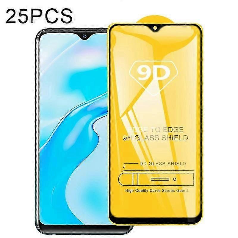 For vivo Y1s 25 PCS 9D Full Glue Full Screen Tempered Glass Film