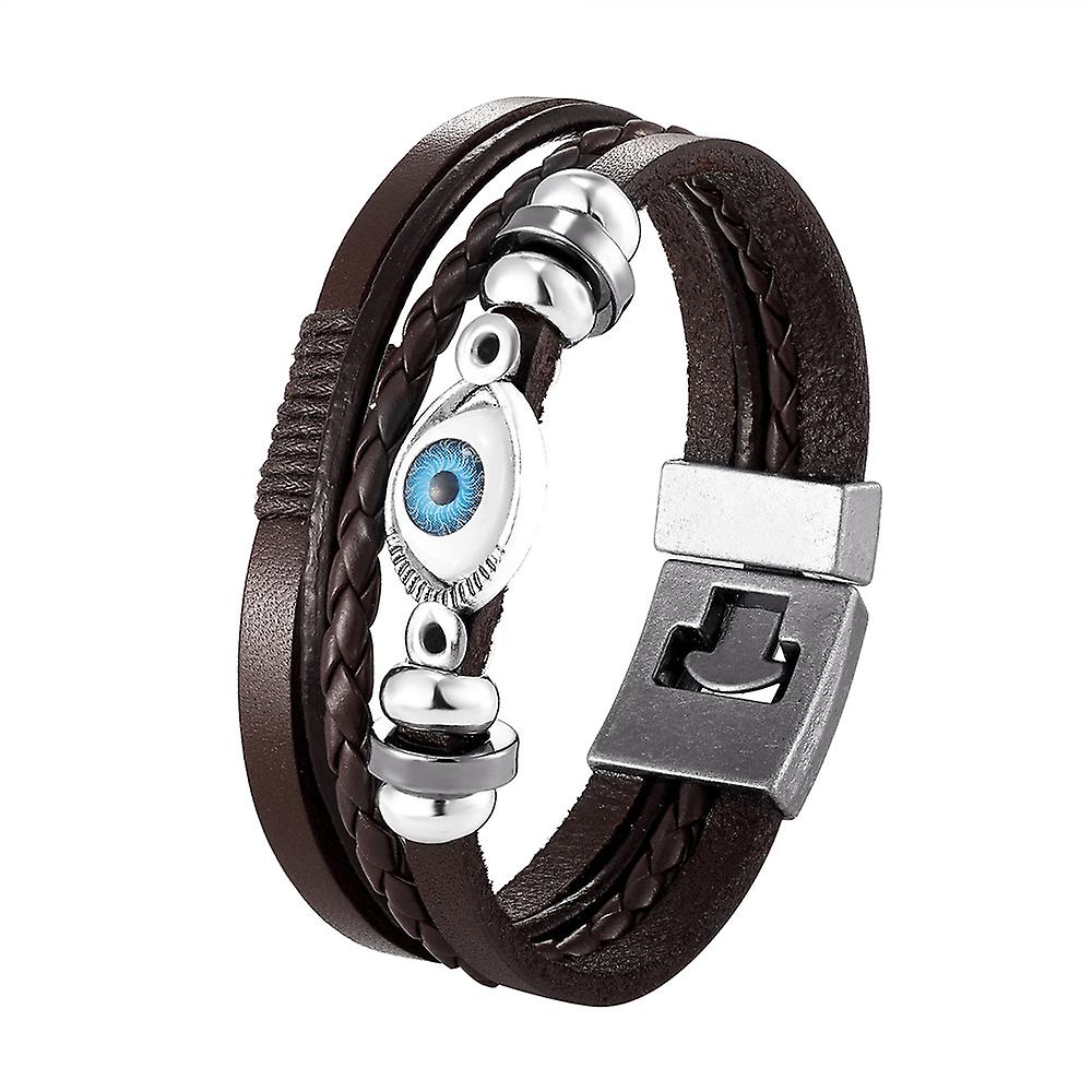 Voq Punk Men Evil Eye Bracelet Wide Clasp Hand Woven Multi-layer Leather Bracelets Bangles Luxury Jewelry Gift