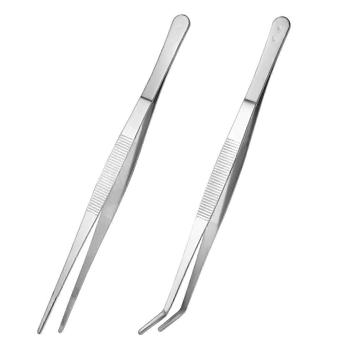 VORCOOL 2pcs Stainless Steel Straight and Curved Nippers Tweezers Feeding Tongs for Reptile Snakes Lizards Spider (Silver)