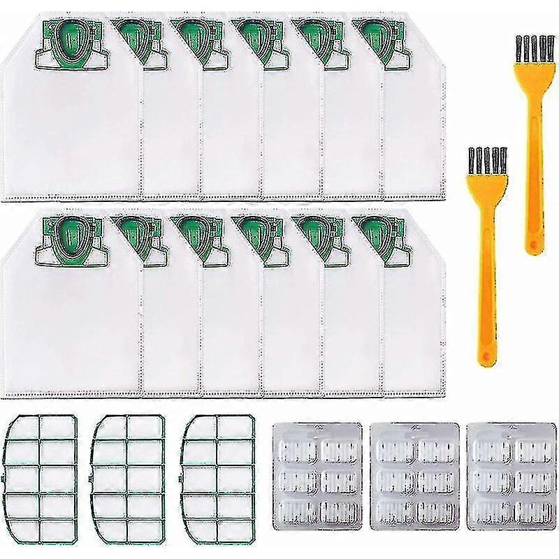 12 Bags For Vorwerk Kobold Vk200 Fp200 Vacuum Cleaner With 3 X Motor Filters, 18 X Scented Chips, 2 X Brushes, Replacement Bags For Kobold Vk200 Fp200