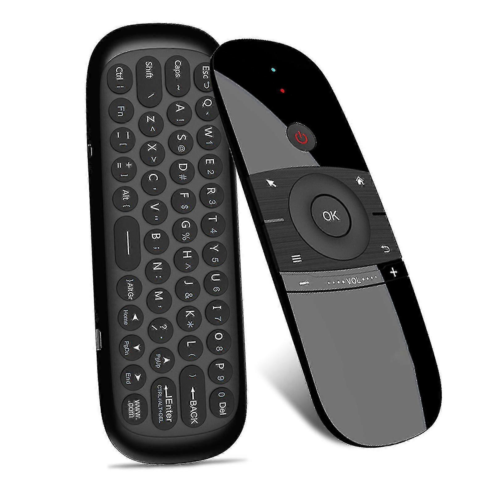 This 2.4G 6-Axis Air Mouse is a remote controller with the function of mouse, keyboard and Motion Sense Support. It can provide people a unique and capable tool to operate their PC, smart TV, android TV Box, media player, set top box simply by moving it directly in the air. It is plug and play, simple and smooth. The mini keyboard allows for convenient typing. With infrared learning function, it can learn different remote controller, to control TV and other media players.Features:4-in-1 Super Combo: Supports Air Mouse, Wireless Keyboard, IR Learning Remote Control and Motion Sensing Game, four in one smart combo.2.4G Wireless Connection: 2.4G wireless connection via USB receiver, plug and play, enjoy long-range wireless control up to 10 meters.6-Axis Inertial Sensor: 6-Axis inertial sensor enables to sense the change of the direction and speed. Just move it in the air to freely control your device.Wireless Keyboard: 45 keys mini keyboard, comfortable to slide from key to key, easy to operate. Curve modeling design offers perfect touch feeling.Widely Used: Compatible with Android, Windows and Linux OS. Suitable for HTPC, Smart TV, Android TV BOX, All-in-one PC, Laptop, projector and so on.Note: Infrared learning function does not support for LG, Samsung, Sony TVs.Specifications:Model Number: W1Transmission Control: 2.4GHz RF wirelessAmount of keys: 57Remote Control Distance: Up to 10mBattery: Built-in 3.7V 300mAh lithium batteryWorking Current: 9mAStandby Current: 25uAIR Learning Function: YesCPI (Mouse Pointer Movement Speed) Adjustment: YesAuto Sleep and Wake Up: YesMaterial: Plastic + siliconeColor: BlackMain Item Size: 15.8 * 5.5 * 1.6cm / 6.22 * 2.17 * 0.65inMain Item Weight: 86g / 3.04ozPackage Size: 18.0 * 9.5 * 1.8cm / 7.08 * 3.74 * 0.70inPackage Weight: 137g / 4.84ozPackage List:1 * Air Mouse Keyboard1 * USB Receiver1 * USB Charging Cable1 * User Manual