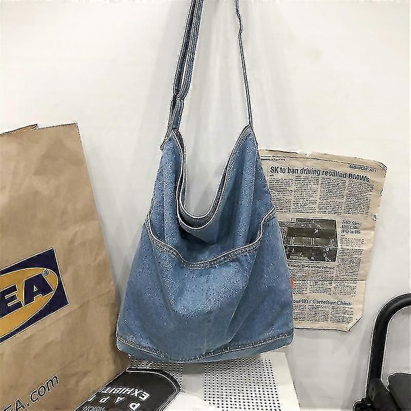 Wabjtam Denim Shoulder Bag For Women Hobo Tote Bag Casual Canvas Bag Retro Crossbody Bag Large Capacity Purse
