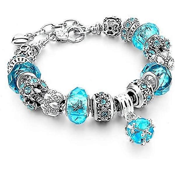 WABJTAM Blue Theme Silver Plated Charm Bracelet for Women and Teens, Adjustable Jewelry Gift Set