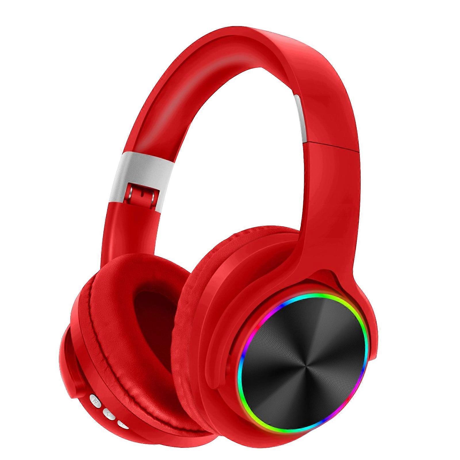 Wanfds Wireless Bluetooth Headphones, Noise Cancelling, LED Light, HiFi Sound, Foldable, Mic, Compatible with IOS & Android