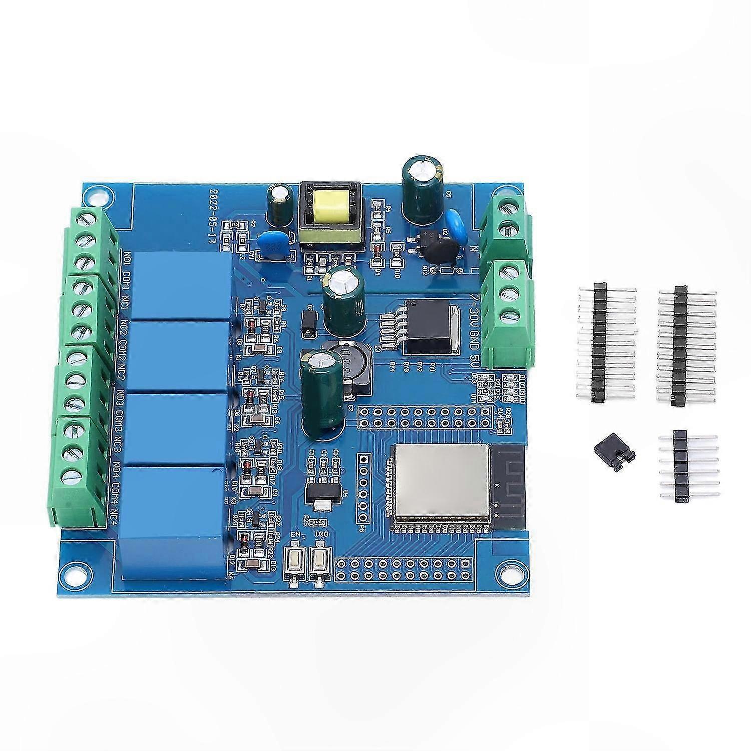 WiFi Bluetooth Development Board with 4-Channel Relay Module and Programmable Reset Function for Wireless Projects